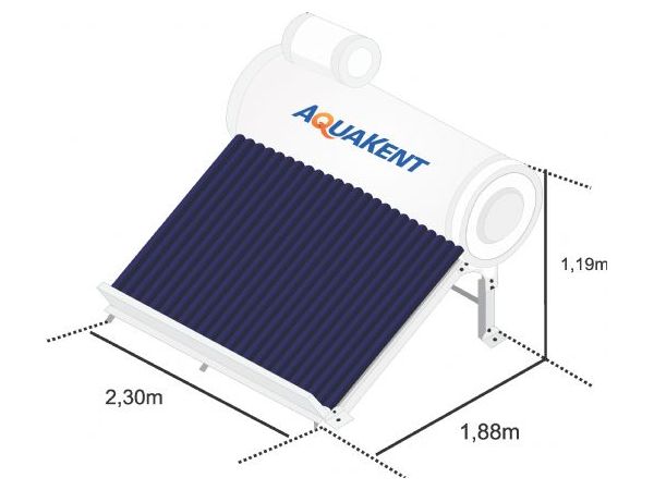 O aquecedor solar trabalha em processo de termo sifão, que se da pela diferença de densidade entre a água fornecida ao aquecedor solar (ao sistema) e a água quente proveniente da troca de calor nos tubos de vidro a vácuo.